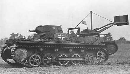 En 1939-1940, 100 Pz.kpfw I Ausf.A/Bs furent convertis en Ladungsleger auf Panzerkampfwagen I Ausf.A/B / zestorerpanzer. Ces véhicules transportaient une charge d'explosive de 50 kg. Les deux versions mises aux points se différenciaient par l'équipement utilisé pour manipuler la charge. Ces engins furent utilisés par les Pionniers (Génie) durant les campagnes de 1940 et en Russie. In 1939-1940, 100 Pz.kpfw I Ausf.A/Bs were converted into Ladungsleger auf Panzerkampfwagen I Ausf.A/B / zestorerpanzer. These vehicles transported an explosive load of 50 kg. The two versions developped were different by the equipment used to handle the load. These machines were used by the Pioneers during the campaigns of 1940 and in Russia.