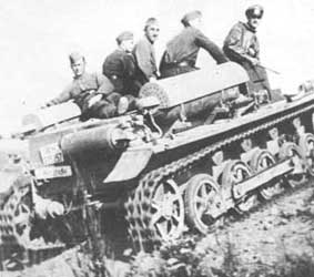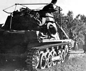 Panzerkampfwagen I Light Tank Conversions Pz-Befehlswagen I Ausf.BLe Panzer-Befehlswagen I Ausf.B ou Kleiner Panzer Befehlswagen I (Sd.Kfz.265) était un char de commandement conçu par Krupp en 1935 sur base du châssis du Pz.Kpfw I Ausf.B. Entre 1935 et 1937, 190 exemplaires de ce véhicule de commandement sortiront des lignes d'assemblage de Daimler-Benz. La tourelle fut remplacée par une superstructure accueillant un poste de commandement, seulement armée d'une mitrailleuse MG 34 montée sur rotule sur le côté droit de l'avant de la superstructure. Panzer-Befehlswagen I Ausf.B or Kleiner Panzer Befehlswagen I (Sd.Kfz.265) was a tank of command conceived by Krupp in 1935 on the basis of chassis of Pz.Kpfw I Ausf.B. Between 1935 and 1937, 190 specimens of this command vehicle will leave from the lines of assembly of Daimler-Benz. The turret was replaced by a superstructure accomodating a headquarters, only armed with a machine-gun MG 34 mounted on ball on the right side of the front of the superstructure.