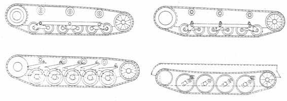 Le Panzer II était à l'origine équipée d'une suspension composé de deux barbotins avant, de deux poulies de tensions dégagées du sol et de deux fois 6 petits galets de roulement (montés par deux sur 6 boggies à ressorts à lames) avec longerons, ainsi que trois rouleaux porteurs. Dès le modèle c la suspension fut modifiée pour comprendre désormais deux fois 5 galets indépendants montés sur ressorts à lames et 4 rouleaux porteurs. Cette suspension deviendra la suspension standard du Panzer II. Certains modèles spéciaux comme les Panzers II Ausf.D/E/G/H/J/M/L furent équipés d'une suspension à barres de torsion comprenant 4-5 axes montés de grands galets imbriqués ou non, sans rouleaux porteurs. Des chenilles de 305 mm furent montés sur le Panzer II bien que les modèles possédant une suspension à galets imbriqués furent équipés de chenilles de 360 mm de large. Panzer II was in the beginning equipped with a suspension made up of two front sprocket-wheels, two pulleys of tension disengaged from the ground and 12 small road wheels (mounted by two on 6 leaf spring bogie trucks) with members, like three return rollers. As of the model C the suspension was modified to include 5 independent road wheels assembled on leaf springs and 4 return rollers. This suspension will become the standard suspension of Panzer II. Certain special models as Panzers II Ausf.D/E/G/H/J/M/L were equipped with a suspension with torsion bars including 4-5 axes with large road wheels imbricated or not, without return rollers. Tracks of 305 mm were assembled on Panzer II although the models having a suspension with overlapping road wheels were equipped with 360 mm broad tracks.