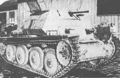 7.5 cm Stu.Kan. auf Pz.Kpfw. 38 (t)Lors d'une réunion à Berlin avec le Wa Prüf 6, le 3 mars 1942, il fut demandé à B.M.M. de monter un Sturmkanone de 7.5 cm sur le châssis de leur Pz.Kpfw. 38(t) pour créer un canon antichar automoteur, projet autorisé par Hitler lui-même. Rheinmetall-Borsig a obtenu un contrat pour la conception de l'affût du canon et B.M.M. a obtenu des contrats pour la conception de la superstructure et l’assemblage d’un seul Versuchsfahrzeug (véhicule d’essai). B.M.M. réalisa le Versuchsfahrzeug avec le Stu.K de 7,5 cm 40 L / 43 monté sur un pont boulonné au châssis du Pz.Kpfw 38 (t). Une superstructure à ciel ouvert protégeait l'équipage de quatre personnes uniquement contre les tirs d'armes légères et les fragments d'obus d'artillerie de l'avant et sur les côtés. Avec un blindage variant de 10 à 50 mm d'épaisseur, le Versuchsfarzeug pesait 11 tonnes. Avec un moteur Praga Typ TNHPS/II d’une puissance nominale de 125 chevaux, il offrait un rapport poids/puissance relativement bas et une vitesse maximale de 35 km/h. Un seul Versuchsfahrzeug fut ainsi complété par B.M.M. sans attribution de contrats de production en série. At a meeting in Berlin with Wa Prüf 6 on 3 March 1942, B.M.M. was reqeusted to mount a 7.5 cm Sturmkanone onto ,their Pz.Kpfw. 38 (t) chassis to create a self-propelled anti-tank gun as a project authorized by Hitler himself. Rheinmetall-Borsig was awarded a contract to design the gun mount, and B.M.M. was awarded contracts to design the superstructure and assemble a single Versuchsfahrzeug (test vehcile). B.M.M. completed the Versuchsfahrzeug with the 7.5 cm Stu.K. 40 L/43 mounted on a bridge bolted to the Pz.Kpfw 38 (t) chassis. An open topped superstructure protected the crew of four only against small arms fire and artillery shell fragments from the front and sides. With armor varying from 10 to 50 mm thick, the Versuchsfarzeug weighed 11 metric tons. With a Praga Typ TNHPS/II engine rated at 125 horsepower it had a fairly low power to weight ratio and a maximum speed of 35 km/h. Only a single Versuchsfahrzeug was completed by B.M.M. without any series production contracts being awarded.