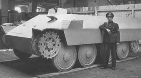 Vollkettenaufklarer 38(t) KatzchenEn 1943, la firme Automobile-Union reçu la commande d'un véhicule de reconnaissance entièrement chenillé destiné au front oriental. Le véhicule devait transporter 6 à 8 soldats et ne devait pas engager les véhicules ennemis. Début 1944, Automobile-Union produisit la maquette complète ainsi que deux prototypes. Le compartiment de combat n'avait pas de toit. L'équipage était composé du pilote (à gauche) et du mitrailleur (à droite). Assurant la même fonction que le transport de personnel semi-chenillé Sd.Kfz.251, il avait en plus la même disposition interne. Le véhicule était propulsé par un Maybach 50Z de 180-200 CV. Le blindage étais épais de 14.5mm sur les côtés et l'arrière et de 30mm à l'avant. Le châssis comportait quelques nouveautés comme par exemple roues bordées d'acier. Les deux prototypes furent examinés à Berka en été 1944 où on découvrit de nombreux problèmes mécaniques. En septembre 1944, Automobile-Union reçu l'ordre de stopper le travail de développement qui fut confié à BMM sur base du châssis du Jagdpanzer 38(t) Hetzer. In 1943, the firm Automobile-Union received the order of an entirely tracked vehicle of reconnaissance intended for the Eastern front. The vehicle was to transport 6 to 8 soldiers and was not to engage the enemy vehicles. At the beginning of 1944, Automobile-Union produced the complete model and two prototypes. The compartment of combat did not have a roof. The crew was composed of the pilot (on the left) and the machine gunner (on the right). Providing the same function as the half-tracked personnel carrier Sd.Kfz.251, it had in more the same internal provision. The vehicle was propelled by Maybach 50Z of 180-200 HP. The shielding were thick of 14.5mm on the sides and the back and of 30 mm to the front one. The chassis comprised some innovations such as for example road wheels bordered with steel. The two prototypes were examined in Berka in summer 1944 when many mechanical problems were discovered. In September 1944, Automobile-Union received the command to stop the work of development which was entrusted to BMM on the basis of chassis of Jagdpanzer 38(t) Hetzer.