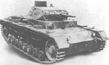 Panzerkampfwagen III Medium Tank Le Panzerkampfwagen III Ausf.A fait son apparition en 1936. Conçu par Daimler-Benz, il comportait une suspension dotée de 5 double-galets (sur barres de torsion) , un barbotin avant, une poulie de tension et deux rouleaux porteurs. Son moteur était un 12 cylindres Maybach 180TR développant 250CV et sa transmission comportait 6 vitesses et 1 marche arrière. Le Panzer III Ausf.A pesait 15.4 tonnes. Ce poids plutôt faible s'expliquait par la faible épaisseur du blindage (15 mm) prévu seulement pour protéger le char contre les projectiles perforants des armes antichar légères (14-20 mm). Ces restrictions de poids venaient du fait que la suspension convenait mieux à un véhicule commercial qu'à un char de combat. Panzerkampfwagen III Ausf.A makes its appearance in 1936. Conceived by Daimler-Benz, it comprised a suspension equipped with 5 double-road wheels (on torsion bars), a front sprocket-wheel, a idler and two return rollers. Its engine was one 12 cylinders Maybach 180TR developing 250hp and its transmission comprised 6 forward speeds and 1 reverse speed. Panzer III Ausf.A weighed 15.4 tons. This rather weak weight was explained by the low thickness of the shielding (15 mm) envisaged only to protect the tank against the armor piercing projectiles from the light anti-tank weapons (14-20 mm). These restrictions of weight came owing to the fact that the suspension was appropriate better for a commercial vehicle that for a tank.