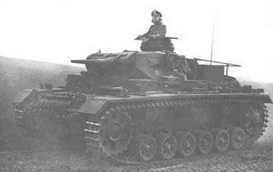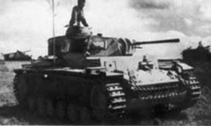 Befhelspanzer III Afin de diriger les mouvements de larges formations blindées, les Allemands ressentirent le besoin de disposer de chars spéciaux de commandement. Le premier modèle construit fut le Kleiner Panzerbefehlswagen I Ausf.B (basé sur le Panzer I Ausf.B) qui fut cependant jugé trop petit et trop peu armé pour accompagner les autres chars au combat. Pour réaliser un char de capable d' accompagner les chars standards et d' accueillir le matériel radio nécessaire à un char de commandement, les Allemands convertirent le Panzer III en Grosser Panzerbefehlswagen III. La conversion ressemblait à un char standard si ce n' est que la tourelle était soudée ou boulonnée à la caisse, que le canon était factice et que des sabords de vision supplémentaires furent installées sur le pourtour de la superstructure et la mitrailleuse de caisse fut remplacée par un de ces sabords. La protection du char fut améliorée par des plaques additionnelles de 30 mm d' épaisseur. L' intérieur de la tourelle accueillait les différents postes radio et une tablette pour les cartes. Les postes radio étaient de type Fu 13, Fu 6 et Fu 7 à ondes ultracourtes ainsi que Fu 8 à ondes moyennes. Notons que certains exemplaires furent doté d' un poste de liaison air-terre pour la coordination avec la Lutwaffe. Le Pz-BfWg III était équipé de deux antenne-périscopiques et d' une large antenne-cadre sur le plateau arrière. L'équipage était composé d' un commandant, d' un officier d' état-major, de 2 opérateurs radio et du pilote. Le seul armement du char était constitué par la MG 34 flexible montée sur rotule au centre du faux masque de la tourelle. Le premier modèle réalisé fut le Pz.BfWg III Ausf.D1 (Sd.Kfz.267(Fu 6 et Fu 8)/268 (Fu 6 et Fu 7)) comme on s' en doute était basé sur le Panzer III Ausf.D. Ce modèle produit à 30 exemplaires (entre juin 1938 et mars 1939), fut utilisé en Pologne et en France mais comme il souffrait d' une suspension plutôt faible il fut vite retiré du service. In order to direct the movements of large armoured forces, the Germans felt the need to have special tanks of command. The first built model was Kleiner Panzerbefehlswagen I Ausf.B (based on Panzer I Ausf.B) which however was considered to be too small and too little armed to accompany the other tanks to the combat. To produce a tank of able to accompany the standard tanks and to accomodate the radio material necessary for a tank of command, the Germans converted Panzer III into Grosser Panzerbefehlswagen III. Conversion resembled a standard tank if it is not that the turret was welded or bolted with the hull, that the gun was factitious and that additional ports of vision were installed on the circumference of the superstructure and the machine-gun of hull was replaced by one of these ports. The protection of the tank was improved by 30 mm thickness additional plates. The interior of the turret accomodated the various radio stations and a table for the maps. The radio stations were of type Fu 13, Fu 6 and Fu 7 withultra-short waves and Fu 8 with medium waves. Let us note that certain specimens were equipped with an air-ground liaison station for coordination with Lutwaffe. Pz-BfWg III was equipped with two antenna-periscopic and broad antenna-frame on the rear deck. The crew was composed of a commander, a driver, 2 radio operators and a staff officer. The only armament of the tank was consisted the MG 34 flexible on ball mount in the center of the false mantlet of the turret. The first model realized was Pz.BfWg III Ausf.D1 (Sd.Kfz.267(Fu 6 et Fu 8)/268 (Fu 6 et Fu 7)) as one of doubt had been based on Panzer III Ausf.D. Thismodel produced with 30 specimens (from June 1938 to March 1939), was used in Poland and France but as it suffered from a rather weak suspension it was quickly withdrawn from the service.