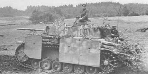 En raison du développement de l' artillerie auto-motorisée, les Allemands ressentirent le besoin d' un véhicule blindé d' observation pour diriger les tirs. Pour réaliser ce véhicule, plusieurs Panzers III obsolètes furent convertis en Panzerbeobachtungswagen III (Véhicule blindé d' observation). Ces véhicules étaient dotés de plaques de blindage de 30 mm supplémentaires à l' avant et à l' arrière). Cependant la modification la plus remarquable fut la suppression du masque initiale et du canon. La mitrailleuse coaxiale fut replacée au centre à la place du canon et la position d' origine de celle-ci fut occupée par un canon factice, le tout sur un nouveau masque. Because of the development of self-propelled artillery, the Germans felt the need for an armoured vehicle of observation to direct the shootings. To produce this vehicle, several Panzers III obsolete were converted into Panzerbeobachtungswagen III (armoured Vehicle of observation). These vehicles were equipped with additional armour-plates of 30 mm in front and to the back). However the most remarkable modification was the removal of the initial mantlet and the gun. The coaxial machine-gun was replaced in the center in the place of the gun and the position of origin of this one was occupied by a factitious gun, the whole on a new mask.