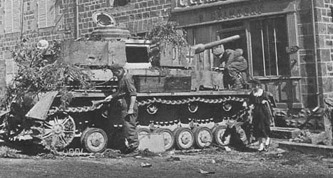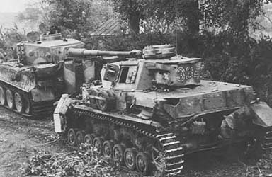 A partir de la mi 1943, l'Allemagne fut sur la défensive, la Panzerwaffe avait perdu l'initiative et était désormais le plus souvent cantonnée dans un rôle de contre-attaque stratégique. Les régiments d'élite ou les plus chanceux auront un bataillon équipé de Panthers et l'autre de Pz.Kpfw IVs, mais ce n'était pas la norme. En effet, à cause de pertes lourdes non compensées par la production, le matériel manquait et de plus en plus souvent les trous étaient comblés par des canons d'assaut ou chasseurs de char, de sorte qu'en 1944 la plupart des régiments ne comptaient qu'un ou deux compagnies ou un bataillon complet de chars de combat. Les canons d'assaut et les chasseurs de chars avec leur champ de tir horizontal limité, n'étaient pas très efficaces comme char de combat, mais pouvaient assurer un appui feu très appréciable (ce qui notons le, étaient le rôle initial du Pz.Kpfw IV). La situation se dégrada de plus en plus au fil des mois, et les régiments de panzer utilisaient tout ce qui leur tombait sous la main et qui était en état de fonctionner. L'organisation stricte des unités laissa place peu à peu à des groupes de combat ou "Kampfgruppen" composés de tout et n'importe quoi pouvant tirer et rouler. From mid the 1943, Germany was on the defensive, Panzerwaffe had lost the initiative and from now on was generally confined in a role of strategic counter-attack. The regiments of theelite or luckiest will have a battalion equipped with Panthers and the other of Pz.Kpfw IV, but it was not the standard. Indeed, because of heavy losses not compensated by the production, the material missed and more and more often the holes were filled by assault guns or tank destroyers, so that in 1944 the majority of the regiments counted one or two companies or a complete battalion of tanks. The assault guns and the tank destroyers with their limited horizontal field of fire, were not very effective like battle tank, but could ensure a fire support very appreciable (what note it, were the initial role of Pz.Kpfw IV). The situation was degraded more and more with the wire of month, and the regiments of panzer used all that fell to them under the hand and which was in a position to function. The strict organization of the units left room little by little to groups of combat or "Kampfgruppen" made up of all and anything being able to combat and move.