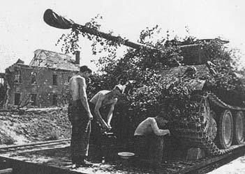 A partir du modèle A, le Panther devint une arme formidable et le meilleur char allemand de la deuxième guerre mondiale. Il fut abondamment utilisé en Normandie où 400 d'entre-eux furent détruits. En général les Panthers endommagés retournaient à l'usine pour réparations où pour être reconvertis en véhicules hybrides. Starting with the first production model A, the Panther was a formidable weapon and the best German tank of the second world war. Many were used in Normandy, where some 400 were destroyed. In general, damaged Panthers were returned to the factory for repairs or for conversion into hybrid vehicles.