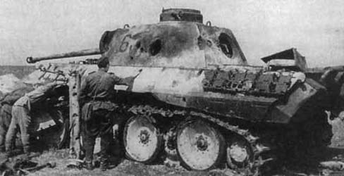 La plupart étaient tout simplement tombés en panne ! Les défauts mécaniques causèrent plus de dégats que les armes anti-chars soviétiques. Les Panthers Ausf.D qui participèrent à cette bataille servirent dans les Panzer Abteilungen 51 et 52 (2 x 96), dans le Panzer Regiment Stab 39 (2 x 18) et dans diverses unités du Heeregruppe Sud. Par la suite les autres Panthers du modèle D et des modèles ultérieurs servirent dans des bataillons indépendents au sein des Panzer.Divisions et également dans les Pz.Rgt des SS-Pz.Divsions Das Reich et LSSAH. Cependant seulles les unités d'élite purent disposer d'effectifs complets. La production ne rencontra jamais le demande, de sorte que le Panther ne put jamais remplacer véritablement le Panzer IV. The majority had quite simply broken down! The mechanical defects caused more damage than the Soviet anti-tank weapons. Panthers Ausf.D which took part in this battle were useful in Panzer Abteilungen 51 and 52 (2 X 96), in Panzer Regiment Stab 39 (2 X 18) and in various units of Heeregruppe South. Thereafter other Panthers of the model D and the later models were used in independent battalions within Panzer.Divisions and also in Pz.Rgt of SS-Pz.Divsions Das Reich and LSSAH. However only the elit units could laid out of complete strenghts. The production never met requires, so that the Panther could never replace truly Panzer IV.
