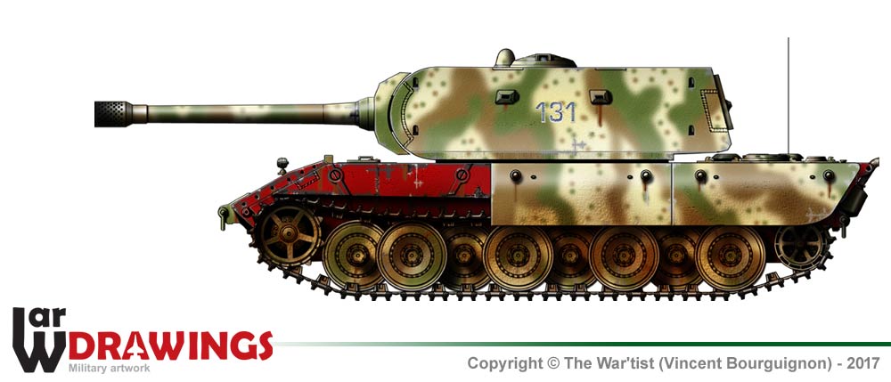 E-100 variant equiped with the Krupp turret and 128 mm KwK gun + secondary 75 mm KwK L/24 gun .