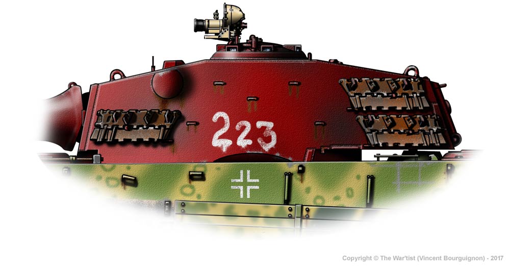 on bogies. The standard Tiger II turret was equiped with 10.5 cm high