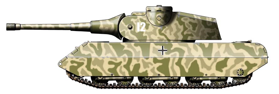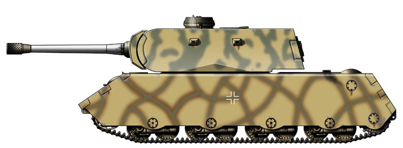 Porsche's Super Heavy Tanks Projects Le 21 Mars 1942, Adolf Hitler demande au professeur Porsche de concevoir un char lourd en concurrence du projet de Krupp, le Panzerkampfwagen VII Löwe qui avance bien trop lentement aux yeux du Führer. Le célèbre ingénieur allemand débute dès lors en avril 1942, un programme baptisé Mammut ou vK 100.01(P), un char de 100 tonnes. Le premier prototype doit être terminé en mai 1943. Afin de cacher la taille du futur char aux services de renseignements alliés, le projet est baptisé trompeusement Mäuschen (souriceaux) le 17 juillet 1942. Une premier dessin est proposé par l'ingénieur Leopold Schmid le 4 juin 1942 sous l'appélation K 3381 (également référencé Porsche Typ 205). Ce char présente un blindage frontal de 120 mm et comme canon principal un 15cm KwK L/40 (longueur du tube: 6m), et un poids théorique de 120 tonnes, dont 23 tonnes pour la seule tourelle. Le canon est puissant, mais les projectiles de 43kg font craindre une cadence de tir assez faible, et sa vitesse initiale de 518 m/s est jugée insuffisante. Un projectile plus léger dont le poids est réduit à 34 kg sera mis au point, permettant en théorie aux deux chargeurs de soutenir une cadence de tir de 4-5 coups/minute. La vitesse initiale est nettement amélioré passant à 845 m/s. Malgré tout l'arme parait toujours être trop encombrante pour une tourelle de char et un canon de 12.8cm L/50 (vitesse initiale de 840 m/s) est envisagé en remplacement. Comme sur les projets précédant comme le Tiger(P), la transmission consiste en un système hybride constitué d'éléctromoteurs, générateurs électriques et un 16 cylindres Diesel à refroidissement par air. La pression au sol est estimée à 0.92 kg/cm2. On March 21, 1942, Adolf Hitler asked to Professor Porsche to design a heavy tank in competition with Krupp's project, the Panzerkampfwagen VII Löwe, which is progressing too slowly in the eyes of the Führer. The famous German engineer began in April 1942, a program named Mammut or vK 100.01(P), a tank of 100 tons. The first prototype is to be finished in May 1943. In order to hide the size of the future tank at Allied intelligence services, the project is misleadingly named Mäuschen (mice) July 17, 1942. A first drawing is proposed by the engineer Leopold Schmid the June 4, 1942 under the name K 3381 (also referenced Porsche Typ 205). This tank has a frontal armor of 120 mm and as main gun a 15cm KwK L/40 (length of the barrel: 6m), and a theoretical weight of 120 tons, of which 23 tons only for the turret. The cannon is powerful, but the projectiles of 43kg make fear a rather weak rate of fire, and its initial velocity of 518 m/s is considered insufficient. A lighter projectile with a weight reduced to 34 kg will be developed, theoretically allowing both loaders to sustain a firing rate of 4-5 rounds / minute. The initial velocity is significantly improved to 845 m/s. In spite of everything the weapon seems always to be too bulky for a turret of tank and a gun of 12.8cm L/50 (initial velocity of 840 m/s) is envisaged in replacement. As on previous projects like the Tiger (P), the transmission consists of a hybrid system consisting of electric motors, electric generators and a 16 cylinders air-cooled diesel engine. The ground pressure is estimated at 0.92 kg/cm2.