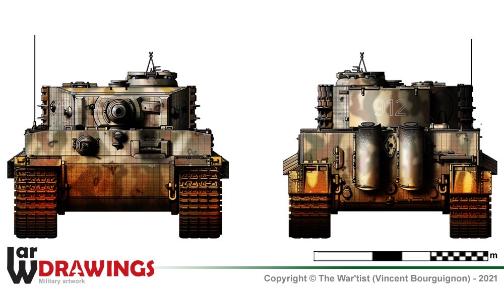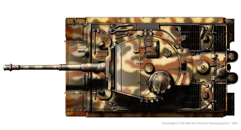 101 - Villers-Bovage, Calvados Dpt, Low-Normandy, France, 13 June 1944. With this Tiger (which is not his personal tank), Wittmann blocked the advance of the 7th Armoured Division (Desert Rats) in the village of Villers-Bocage. |