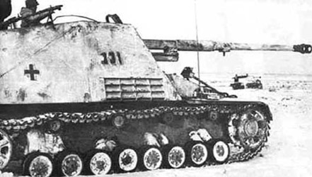 Les deux modèles furent versés dans des schwere Panzerjäger Abteilungen et seront mis en service juste à temps pour l'Offensive de Koursk durant l'été 43, au sein du 655e sPzJagAbt et-ou du 560e sPzJagAbt. Malgré ses défauts ce modèle s'avéra être un redoutable chasseur de char grâce à son 88. Le Nashorn était avant tout un char d'embuscade ou d'affrontements à (longue) distance ce que lui permettait le très efficace 88 anti-char. Le Nashorn excellait donc dans un rôle défensif et non dans un rôle offensif que son faible blindage n'autorisait guère. The two models were versed in schwere Panzerjäger Abteilungen and will be brought into service right in time for the Offensive of Koursk during summer 43, within the 655th sPzJagAbt and/or of the 560th sPzJagAbt. In spite of its defects this model proved to be a frightening tank destroyer thanks to its 88. Nashorn was mainly a tank for ambush or for confrontations at (long) distance what the very effective 88 anti-tank device allowed it. Nashorn thus excelled in a defensive role and not in an offensive role that its weak shielding hardly authorized.