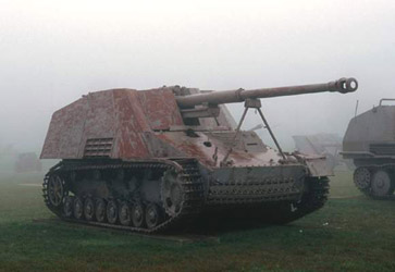 En octobre 1942, un modèle en acier mou fut présenté à Adolf Hitler, qui en accepta le design et ordonna que la production débute en mai 1943. Début 1944, le compartiment du pilote fut modifié et surtout un nouveau canon, le 88 mm Pak 43/1 L/71 fut installé. Fin février 1944, Hitler ordonna que le nouveau modèle soir baptisé Nashorn (Rhinocéros). Bien que peu protégé, le Hornisse/Nashorn offrait une bonne mobilité au canon anti-char de 88. Comme pour le Hummel, ce panzerjäger souffrait d'un manque de place pour transporter des munitions (24 à 40 coups seulement). La superstructure ouverte n'était pas un avantage face aux mauvaises conditions atmosphériques et la protection de l'équipage était assurée par des couvertures de toile. Le Hornisse/Nashorn n'avait pas de mitrailleuse d'appoint prévue, ainsi l'équipage transportait généralement une MG34 ou une MG42 standard dans le compartiment de combat pour quant même assurer une défense locale. De février 1943 à mars 1945, seulement 474 Nashorns et 20 Hornisses furent produits par Alkett et Deutsche Eisenwerke à Tieplitz-Schonau. In October 1942, a soft steel model was presented to Adolf Hitler, which accepted the design and ordered of it that the production begins in May 1943. At the beginning of 1944, the compartment of the pilot was modified and especially a new gun, the 88 mm Pak 43/1 L/71 was installed. At the end of February 1944, Hitler ordered that the new model evening baptized Nashorn (Rhinoceros). Although little protected, Hornisse/Nashorn offered a good mobility to the anti-tank gun of 88. As for Hummel, this panzerjäger suffered from a lack of place to transport ammunition (24 to 40 rounds only). The open superstructure was not an advantage vis-a-vis the bad atmospheric conditions and the protection of the crew was ensured by covers of fabric. Hornisse/Nashorn did not have an auxiliary machine-gun, thus the crew generally transported a standard MG34 or MG42 in the compartment of combat for as even ensuring a local defense. From February 1943 to March 1945, only 474 Nashorns and 20 Hornisses were produced by Alkett and Deutsche Eisenwerke in Tieplitz-Schonau.
