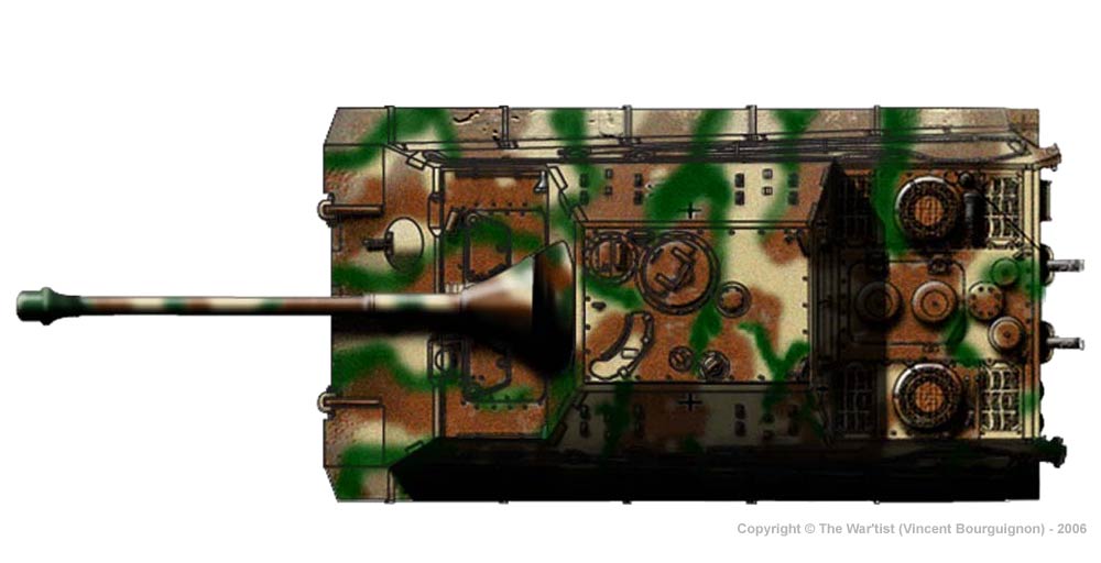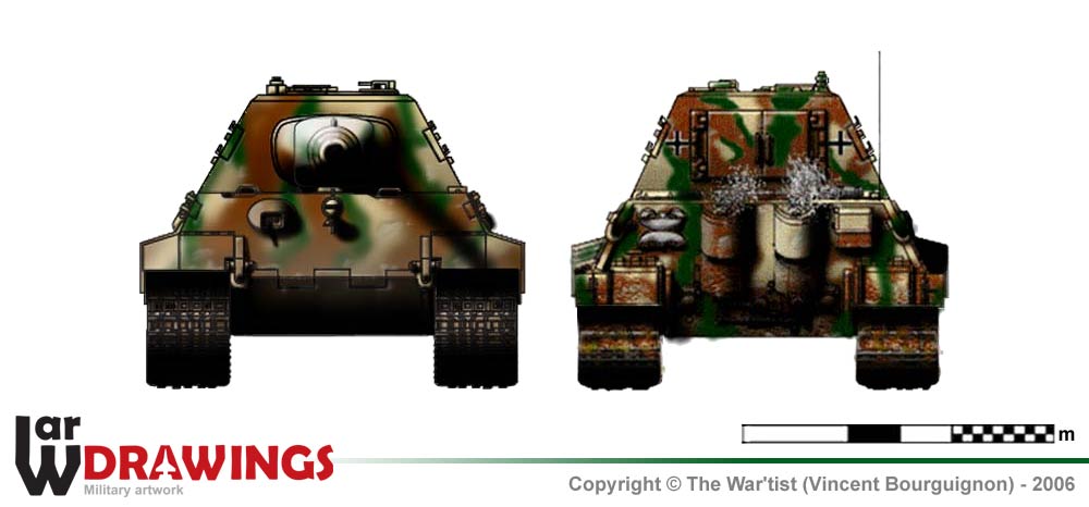 mm PaK 44 (Artist's view). The 7.92 mm MG 34/42 machine gun is mounted on the Fliegerdrehstüze 36 mount on the rear deck. |