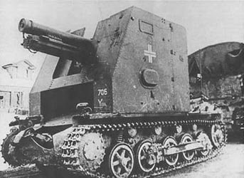 Seulement trois projectiles de 150 mm pouvait être transportés et l'appui d'un half-track porte-munitions était nécessaire. Notons que deux des hommes d'équipage ne prenaient pas place dans canon-automoteur mais en fait dans l'half-track de ravitaillement. Ces deux hommes se chargeaient de faire passer les projectiles du véhicule semi-chenillé à l'obusier de 150 mm. L'obusier était protégé par une large superstructure en forme de boîte ouverte sur l'arrière et le dessus. L'obusier et la superstructure surchargeaient lourdement le châssis et les performances de l'engin étaient pauvres sur route et encore plus en tout terrain. Only three projectiles of 150 mm could be transported and the support of an ammunition half-tracked carrier was necessary. Let us note that two crewmen did not take place in motorized howitzer but in fact in the supply half-tracked vehicle. These two men undertook to make pass the projectiles of the half-tracked vehicle to the howitzer of 150 mm. The howitzer was protected by a broad superstructure in form from box open on the back and the top. The howitzer and the superstructure heavily overloaded the chassis and the performances of the machine were poor on road and even more in cross-country.