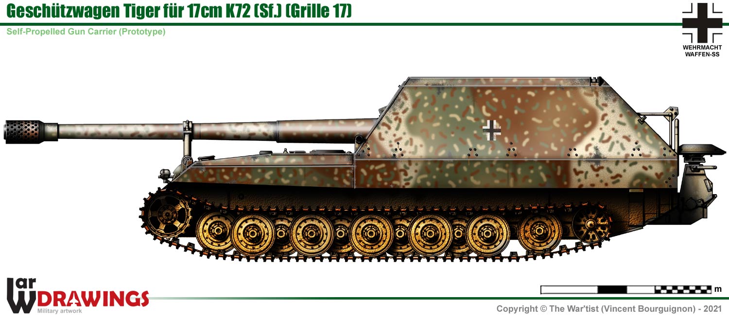 a maximum armor of 30 mm. One prototype of Grille 17 was completed in May of 1945 and was captured by British troops at Haustenbeck near Paderborn. |