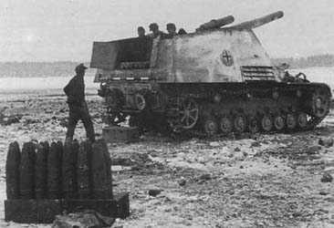15cm sFH 13/1(Sf) auf Geschützwagen III/IV Hummel (Self-Propelled Howitzer) Vers la fin de 1941, le besoin de véhicules de support d'artillerie se fit sentir. Il était question de fournir aux unités sur le front, un véhicule d'artillerie mobile. Début 1942, un prototype basé sur le châssis du Panzer III armé de l'obusier de 105 mm leFH17 (avec frein de bouche) fut mis au point mais fut rejeté car on projetait maintenant d'utiliser le châssis du Panzer IV. Un nouveau prototype utilisant ce châssis et armé du 105 mm leFH17 fut produit. En juillet de 1942, un obusier plus puissant le 150 mm sFH 18 L/30 (sans frein du bouche) fut monté sur un châssis spéciale réalisé par Alkett, le Geschützwagen III/IV. Ce châssis combinait des composants du PzKpfw III (Ausf J - moteur, pompe d'essence et dispositif de direction) et du PzKpfw IV (Ausf.F - suspension). À l'origine, le Hummel (bourdon) ne devait être qu'une solution intérimaire en attendant qu'un châssis plus spécifique soit développé. Towards the end of 1941, the need for support vehicles of artillery was felt. It was a question to provide the front units, with a mobile vehicle of artillery. At the beginning of 1942, a prototype based on the chassis of Panzer III armed with the howitzer of 105 mm leFH17 (with muzzle break) was developed but was rejected because one now projected to use the chassis of Panzer IV. A new prototype using this chassis and armed with the 105 mm leFH17 was produced. In July of 1942, a more powerful howitzer, the 150 mm sFH 18 L/30 (without muzzle break) was assembled on a special chassis produced by Alkett, Geschützwagen III/IV. This chassis combined components of PzKpfw III (Ausf J - engine, pump of gasoline and steering mechanism) and PzKpfw IV (Ausf.F - suspension). In the beginning, Hummel (bumblebee) was to be only one temporary solution while waiting for that a more specific chassis is developed.