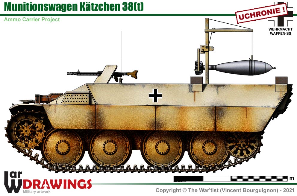 ! This version of the Kätzchen armored personnel carrier, suspected as ammunition carrier for the Sturmmörser 38 (d). |