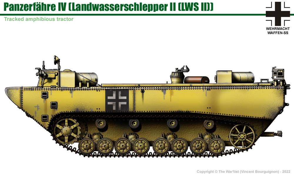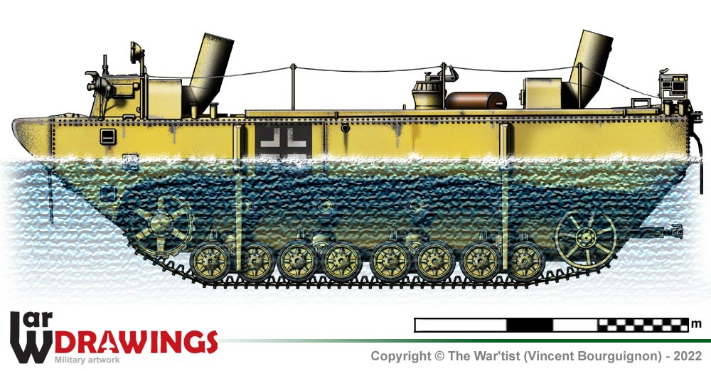 | Range: 350 km on road and 200 km in water Suspension: Leaf springs |