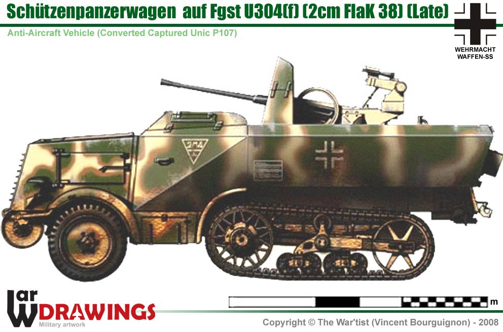 AA Vehicle based on the chassis of the French Unic P107 Halftrack, armed with the 2cm Flak 38.