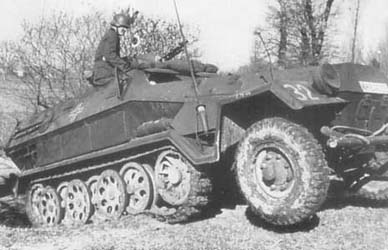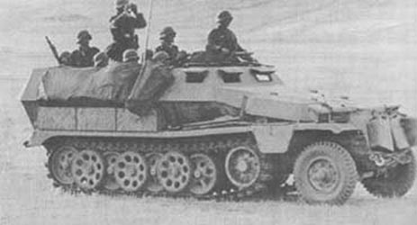 En général, les conceptions allemandes étaient très perfectionnées pour leur époque au contraire de celles des pays alliés, à part les Américains (et leurs fameux M3). Le châssis était aux trois-quarts chenillé: les roues avant pour la direction et la force motrice était transmise aux barbotins avant, du long train de roulement chenillé qui supportait la majorité du poids du véhicule. Le dispositif de pilotage était de type Cletrac, c'est-à-dire transmission à différentiel asservi avec freins de direction sur l'arbre, était monté dans le système de transmission sur l'essieu avant de la suspension. Les barbotins étaient munis de rouleaux et non de dents pour entraîner les chenilles. Le dispositif Cletrac entrait en action à mesure que les roues étaient braquées, ce qui entraînait un freinage approprié des chenilles pour permettre un virage plus facile. Les chenilles étaient très sophistiquées avec des roulements à aiguilles à bain d'huile sur les axes de chenille et des patins en caoutchouc amovibles vers l'intérieur pour amortir le passage des galets et enclencher les rouleaux dentés. Ces chenilles avaient une grande longévité et une excellente adhérence mais étaient en contre partie très chères. Par après les véhicules seront équipés de pignons de type classique et de chenilles à axes secs afin de simplifier et de rendre plus abordable la production. La suspension était faite de barres de torsion suspendues et les galets (disques perforés à bandage plein en caoutchouc) étaient décalées et imbriquées. Cette suspension fournissait une bonne tenue de route mais était très vulnérable à la neige verglacée. In general, the German designs were very sophisticated for their time contrary to those of the Allied countries, with share the Americans (and their famous M3). The chassis was tracked in three-quarter: the nose gear wheels for the direction and the power was transmitted to the front sprocket-wheels, of the longtracked train which supported the majority of the weight of the vehicle. The device of direction was of Cletrac type, i.e. servo-differential transmission with steering brakes on the driveshaft, was assembled in the system of transmission on the front axle of the suspension. The sprocket-wheels were provided with rollers and not with teeth to involve the tracks. The Cletrac device entered in action as the wheels were directed, which involved a suitable braking of the tracks to allow an easier turn. The tracks were very sophisticated with needle bearings with oil bath on the axes of track and the removable rubber links towards the interior to deaden the passage of the road wheels and to engage the indenting rollers. These tracks had a great longevity and an excellent adherence but were in against part very expensive. By after the vehicles will be equipped with pinions of the traditional type and tracks with dry axes in order to simplify and to make more accessible the production. The suspension was made with suspended torsion bars and road wheels (perforated discs with rubber solid tyre) were shifted and imbricated. This suspension provided a good handling but was very vulnerable to icy snow.