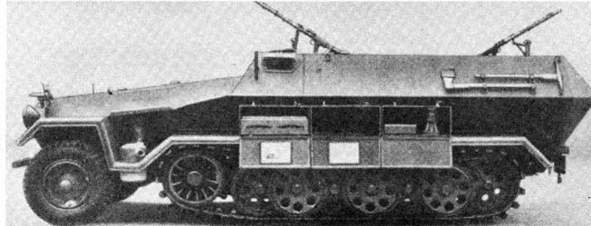 L'utilisation d'half-tracksà la tête de l'attaque obligera les Allemands à concevoir de nombreuses versions afin de renforcer leur puissance de feu. Un total de 23 variantes sera mis au point ainsi que plusieurs conversions de terrain. Une des plus important, fut le Sd.Kfz.251/1 qui remplira le même rôle que le véhicule de base. Cette variante était doté d'un affût à secteur denté pour sa mitrailleuse lourde MG34. Il s'agit d'un affût tripode avec viseur optique sans bouclier. Une deuxième MG34 avec affût lourd était aussi transporté. Ces engins étaient utilisés par les groupes de mitrailleuses lourdes des sections lourdes ou des sections d'appui. The use of half-track vehicles to the head of the attack will oblige the Germans to design many versions in order to reinforce their fire power. A total of 23 alternatives will be developed like several conversions of ground. One of most significant, was Sd.Kfz.251/1 which will fill the same role as the basic vehicle. This alternative was equipped with a MG34-mount with toothed segment for its heavy machine gun MG34. It is about a tripod mounting with reflector view finder without shield. A second MG34 with heavy mounting was also transported. These machines were used by the groups of heavy machine guns of the heavy sections or the sections of support.