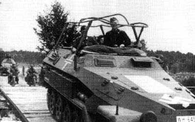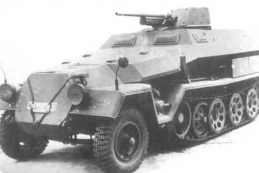 Sd.Kfz.251/6 mittlere KommandopanzerwagenLe Sd.Kfz.251/6 est une autre version de commandement pour les commandants des unités importantes. Ce modèle comporte des bureaux avec panneaux pour les cartes, des machines à chiffrer, un équipement radio à ondes multiples. Il fut connu comme Kommandopanzerwagen et utilisé par quasi tous les commandants de divisions, d'armées et de groupes d'armées. Il était équipé de postes radiophoniques FuG 11 et FuG Tr 100mw. Son armement était composé d'une mitrailleuse MG 34 de 7.92 mm (1100 coups). Sd.Kfz.251/6 is another version of command for the commanders of the significant units. This model comprises offices with panels for the maps, coding machines, radio equipment with multiple waves. It was known like Kommandopanzerwagen and used by quasi all the commanders of divisions, armies and groups of armies. It was equipped with radiophonic stations FuG 11 and FuG Tr 100mw. Its armament was composed of a machine-gun MG 34 of 7.92 mm (1100 rounds).
