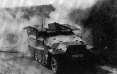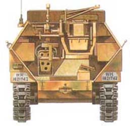 Mittlerer Schützenpanzerwagen Sd.Kfz.251 (Armored Personnel Carrier) Sd.Kfz.251/2 mittlere Schützenpanzerwagen (Granatwerfer)Le Sd.Kfz.251/1 fut également utilisé pour transporter le mortier de 81 mm GrW 34 (66 coups), d'une compagnie d'appui lourde, plus une mitrailleuse MG 34/42 de 7.92 mm (2010 coups). Le mortier pouvait être mis à feu du véhicule mais l'usage standard voulait que le mortier soit utilisé depuis le sol. Une partie des banquettes furent enlevés pour fournir l'espace nécessaire au transport de l'arme et des munitions. Cette version fut dénommé Sd.Kfz.251/2. Notons que plus tard, les half-tracks légers Sd.Kfz.250 seront utilisés pour cette mission, les Sd.Kfz.251 étant trop rares et trop utiles. Sd.Kfz.251/1 was also used to transport the mortar of 81 mm of a heavy company of support. The mortar could be put at fire of the vehicle but the standard use wanted that the mortar is used since the ground. Part of the benches were removed to provide space necessary to the transport of the weapon and the ammunition. This version was called Sd.Kfz.251/2. Note that later, the light half-tracked vehicles Sd.Kfz.250 will be used for this mission, Sd.Kfz.251 being too rare and too useful.