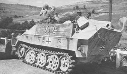 Sd.Kfz.251/9 mittlere Schützenpanzerwagen (7.5 cm)Le Sd.Kfz.251/9 qui entra en service en 1942 était armé du canon court à faible vitesse initiale de 75 mm KwK 37 L/24 (52 coups) qui armait les Pz.Kpfw IV Ausf.A-F et 2 MG 34 de 7.92 mm (2010 coups). Bizarrement il ne s'agit que de la deuxième version du Sd.Kfz.251/1 à être équipé d'un canon, il fut précédé par le Sd.Kfz.251/10. Notons qu'il s'agit d'un Ausf.D. Cette conversion vient du fait que lorsque le Panzer IV fut équipé du canon long de 75 mm et devient un char de combat à part entière, il n'y avait plus assez de canon court de 75 mm pour assurer les missions d'appui. Cette conversion avait pour principal de fournir un appui feu propre aux Panzergrenadiere. Un total de 6 exemplaires formant une compagnie d'appui, équiperont la plupart des bataillons. Le canon de 75 mm L/24 était monté à l'avant de la superstructure. Par après les côtés seront surélevés pour mieux protégés l'équipage. Cet engin très apprécié fut baptisé "Stummel" par la troupe. Sd.Kfz.251/9 which entered in service in 1942 was armed with the short gun at low initial speed of 75 mm KwK 37 L/24 which armed Pz.Kpfw IV Ausf.A-F. Oddly it is only about the second version of Sd.Kfz.251/1 to being equipped with a gun, it was preceded by Sd.Kfz.251/10. Note that it is about Ausf.D. This conversion comes owing to the fact that when Panzer IV was equipped with the 75 mm long gun and becomes a battle tank to whole share, it did not have there enough of short gun of 75 mm to ensure the missions of support. This conversion had as a main thing to provide a support fire suitable for Panzergrenadiere. A total of 6 specimens forming a company of support, will equip the majority of the battalions. The gun of 75 mm L/24 was assembled in front of the superstructure. By after the sides will rised for better protect the crew. This very appreciated machine was baptized "Stummel" by the troop.