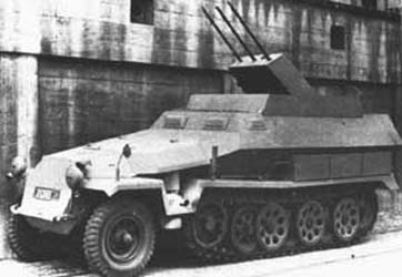 Sd.Kfz.251/17 mittlere SchützenpanzerwagenLe Sd.Kfz.251/17 est une variante antiaérienne armée d'un canon Flak 30 ou Flak 38 de 20 mm installé dans le compartiment arrière. Différentes versions avec des montages différents seront réalisées. Celle armée du Flak 38 avait parfois une superstructure aux parois latérales bombées pour augmenter le champ de tir horizontal. Ces véhicules sont destinés à fournir un appui feu anti-aérien aux unités de chars et aux Panzergrenadiere. Cependant ils pouvaient être utilisés contre des cibles au sol. Sd.Kfz.251/17 is an anti-aircraft alternative armed with a gun Flak 30 or Flak 38 of 20 mm installed in the back compartment. Various versions with different assemblies will be carried out. That armed with Flak 38 had sometimes a superstructure with convex side walls to increase the horizontal field of fire. These vehicles are intended to provide an anti-aircraft fire support to the units of tanks and Panzergrenadiere. However they could be used against ground targets.