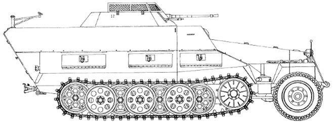 Sd.Kfz.251/23 mittlere Schützenpanzerwagen (2 cm KwK)Le Sd.Kfz.251/23 était armé du 20 mm KwK 38 (100 coups) et de 2 7.92 mm MG42 (2010 coups) dans une station arrière modifiée. Son poste radiophonique est un FuG 12. Sd.Kfz.251/23