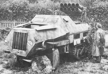 300 specimens were produced by Opel between April 1943 and March 1944 whereas into June 1944 19 Sd.Kfz.4 (transport of ammunition) were converted into Sd.kfz.4/1. 289 Sd.kfz.4 were produced by Opel. The two vehicles were versed in Nebelwerfer Brigades on all fronts.