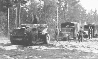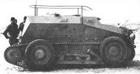 Sd.Kfz.254 Mittlere Gepanzerte BeobachtungskraftwagenSous l'appellation Sd.Kfz.254 "Mittlerer Gepanzerter Beobachtungskraftwagen" (véhicule blindé moyen d'observation), l'Allemagne mis également en service un véhicule autrichien hybride. Il s'agissait d'un véhicule à roues et chenilles pouvant passer de l'un à l'autre suivant le terrain. Il était propulsé par un moteur diesel 6 cylindres et était à l'origine destiné à l'armée autrichienne comme tracteur d'artillerie. L'Allemagne en produira quelques uns en augmentant leur blindage. Le seul armement prévu pour cet engin fut une MG34. Under name Sd.Kfz.254 "Mittlerer Gepanzerter Beobachtungskraftwagen" (aid armoured observation vehicle), Germany also brought into service a hybrid Austrian vehicle. It was about a vehicle with wheels and tracks being able to pass from the one to the other following the ground. It was propelled by a diesel engine of 6 cylinders and at the origin was intended for the Austrian army like artillery tractor. Germany will produce some of them by increasing their shielding. The only armament planned for this machine was a MG34.