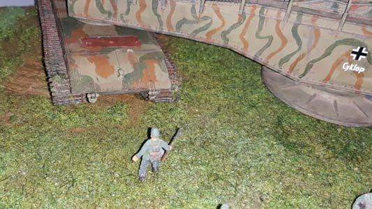 the gun being only deposited on its tracked platforms