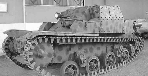 Second modèle, équipé d'une casemate rivetée. La première série était armée de deux mitrailleuses de 8 mm modello 14/35 qui seront plus tard remplacées par des mitrailleuses Breda de même calibre. La seconde série se distinguait de la première par des plaques latérales obstruant les ouvertures. En 1938 le CV-35 fut officiellement rebaptisé L3 ou encore L3/35 (L pour leggero (léger), 3 pour le tonnage et 35 pour l'année d'introduction). 200 exemplaires furent modifiés avec le train de roulement du L3/38. Une version d'exportation fut également conçue armée d'une mitrailleuse de 13.2 mm Breda Modello 1931. Certains modèles seront également équipés d'un canon de 20 mm Solothurn. Second model, equipped with a riveted casemate. The first series was armed with two machine-guns of 8 mm modello 14/35 which will be replaced later by Breda machine-guns of the same caliber. The second series was distinguished from the first by side plates blocking the openings. In 1938 the CV-35 was officially renamed L3 or L3/35 (L for leggero (light), 3 for tonnage and 35 for the year of introduction). 200 specimens were modified with the running gear of L3/38. A version of export was also conceived armed with a machine-gun of 13.2 mm Breda Modello 1931. Certain models will be also equipped with a gun of 20 mm Solothurn.
