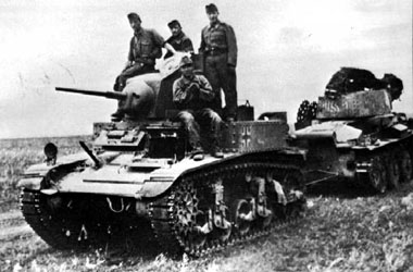 Le Panzerkampfwagen II Ausf.F est la version majeure de la série du Panzer II, produite à 524 exemplaires en 1941-1942. Ce char léger armé d'un canon automatique de 20 mm et d'une mitrailleuse de 7.92 mm est avant tout un char de reconnaissance. Encore largerment en dotation dans la Panzerwaffe lors de Barbarossa en 1941, il sera vite relégué à des taches secondaires. Il est vrai que depuis la campagne de France (si pas celle de Pologne) ses capacités pour le combat char contre char ne font plus guère d'illusions. Cependant il reste efficace contre les cibles molles comme les blindés légers et les véhicules non blindés. Les Hongrois en recevront quelques exemplaires en 1942, ils seront incorporés à la 1re division blindée. Panzerkampfwagen II Ausf.F is the major version of the series of Panzer II, produced to 524 specimens in 1941-1942. This light tank armed with an automatic gun of 20 mm and a machine-gun of 7.92 mm is before all tank of reconnaissance. Still largerment in number in Panzerwaffe at the time of Barbarossa in 1941, it will quickly be relegated to secondary spots. It is true that from the campaign of France (if not that of Poland) its capacities for the tank-to-tank combat hardly any more make illusions. However there remains effective against the soft targets like the light armored vehicles and the not armored vehicles. The Hungarians will receive some specimens in 1942 from them, they will be incorporated in the 1st armored division.