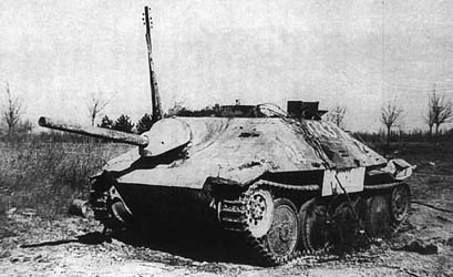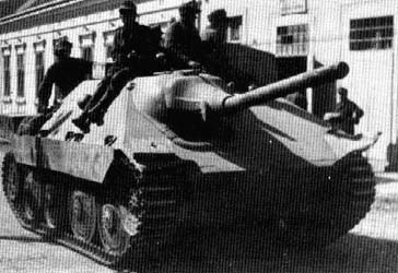 Le Jagdpanzer 38(t) Hetzer est un chasseur de char de petite taille mais d'un très bon rapport qualité/prix par rapport au chasseurs de chars lourds développés durant la même période. Il était armé d'un canon de 75 mm PaK 39 L/48 dans une casemate entièrement fermée doté d'un blindage incliné, montée sur le châssis fiable du Panzer 38(t) devenu obsolète comme char de combat. Il était parfait grâce à son petit format pour la chasse à l'affut. Par contre son blindage était insuffisant pour assurer la survie du blindé lors de longs combats à découvert. 2047 exemplaires furent produits à partir de mars 1944. Notons que le char sera encore produit après la guerre par la Tchécoslovaquie. Les Hongrois en reçurent 130 exemplaires en 1944-1945 qui iront garnir les 6 divisions d'infanterie hongroises. Jagdpanzer 38 (T) Hetzer is a tank destroyer of small size but with very a positive quality/price ratio compared to the heavy tank destroyers developed during the same period. It was armed with a gun of 75 mm PaK 39 L/48 in an entirely closed casemate with inclined shielding, assembled on the reliable chassis of Panzer 38 (t) become obsolete like battle tank. It was perfect thanks to its small size for ambush hunting . On the other hand its shielding was insufficient to ensure the survival of the tank at the time of long open ground combat. 2047 specimens were produced as from March 1944. Let us note that the tank will be still produced after the war by Czechoslovakia. The Hungarians accepted from them 130 specimens in 1944-1945 which will furnish 6 Hungarian infantry divisions.