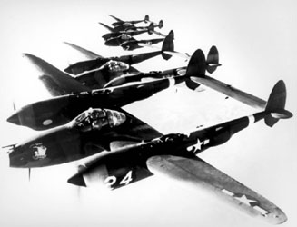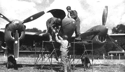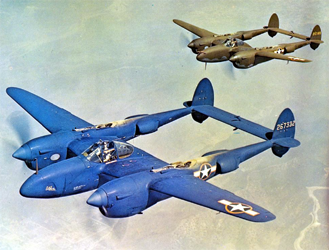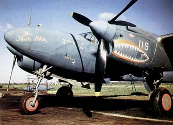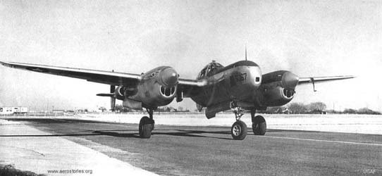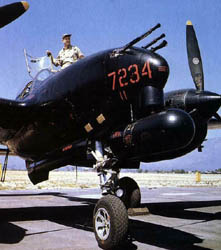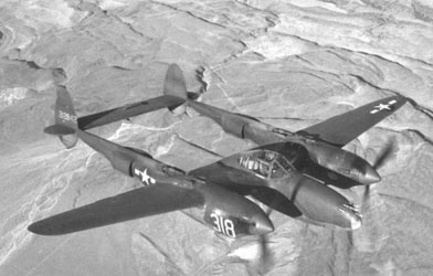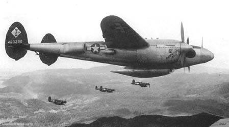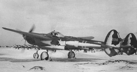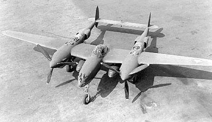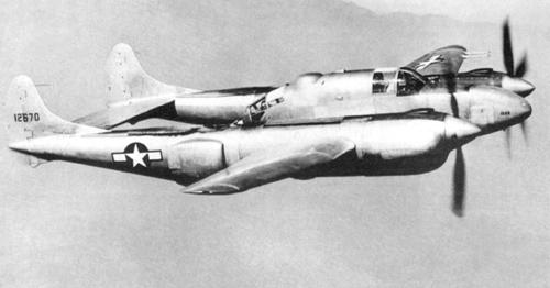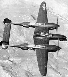 P-38L convertis en chasseur de nuit biplace, le radar étant installé dans une nacelle sous le nez. Les appareils en opération seront peints en noir. Produit à 75 exemplaires. P-38 L converted into two-seat night fighter, the radar is installed in a nacelle under the nose. Craft in operation will be painted in black. 75 copies realized.