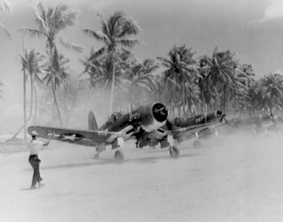 Malgré tout durant les premières années de la guerre du Pacifique deux unités de l'US Navy seront équipés de Corsairs; la VF-12 en octobre 1942 et la VF-17 en avril 1943. En avril 1943, la VF-12 passe avec succès la qualification d'appontage mais les Corsairs de cette escadrille seront finalement livrés aux Marines. Seule la VF-17 conserve ses Corsairs mais est retirée de son porte-avion, l'USS Bunker Hill. En novembre 1943, la VF-17 basée dans les îles Salomon, réinstalle les crosses d'appontage à ses Corsairs pour qu'ils puissent atterrir et ravitailler tout en fournissant la couverture aérienne à la task force lors du raid sur Rabaul. Les Corsairs du VF-17 purent ainsi atterri, ravitailler et décoller sur et à partir de leur ancienne base flottante, le Bunker Hill ainsi que sur le USS Essex, le 11 novembre 1943. Nevertheless during the early years of the Pacific war two units of the U.S. Navy will be equipped with Corsairs; the VF-12 in October 1942 and the VF-17 in April 1943. In April 1943, VF-12 passes the carrier landing qualification but the Corsairs of this squadron will be eventually delivered to the Marines. Only the VF-17 retains its Corsairs, but withdrew from its aircraft carrier, the USS Bunker Hill. In November 1943, VF-17 based in the Solomon Islands, reinstall the stopping hooks of its Corsairs so they can land and refuel while providing air cover for the task force during the raid on Rabaul. The Corsairs of VF-17 could thus landed, refuel and take off to and from their former floating base, Bunker Hill as well as on the USS Essex, November 11, 1943.