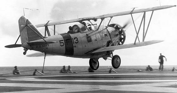 FF Fifi in Action US Navy Le FF-1, familièrement appelé Fifi, entra an service en escadron en juin 1933 au sein du Fighter squadron VF-5B basé sur le USS Lexington. La version de reconnaissance, le SF-1 (dont le livraison débuta le 30 mars 1934) entra également en service sur le même porte-avion, mais cette fois-ci au sein du Scout Squadron VS-3B. Les deux versions, furent retirés des escadrons de première ligne de l'US Navy à la fin de 1936 après une assez courte carrière et reversés dans des unités de réserve. Cependant beaucoup étaient encore en service à la fin de 1940. La majorité des FF-1 furent reconvertis en chasseur d'entraînement à double-commande et renommés FF-2 et cantonnés à l'instruction des pilotes. The FF-1, nicknamed Fifi, entered in squadron service in June 1933 within the Fighter Squadron VF-5B based on the USS Lexington. The reconnaissance version, the SF-1 (whose delivery began March 30, 1934) also entered service on the same aircraft carrier, but this time within the Scout Squadron VS-3B. Both versions were withdrawn from frontline squadrons of the US Navy at the end of 1936 after a relatively short career and versed in reserve units. However many were still in service at the end of 1940. The majority of the FF-1 were converted into dual-control fighter-trainers and renamed FF-2 and confined to pilot training.
