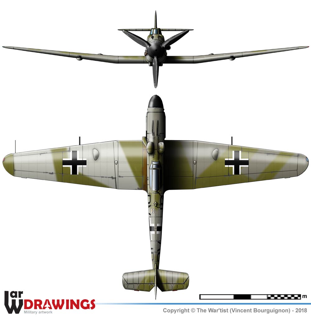 605A engine with GM-1 boost. One particular Bf 109H-1, Werknummer 110073, was recorded as having been converted to a photo-reconnaissance aircraft by a Luftwaffe long-range reconnaissance group, Fernaufklärungsgruppe 123, in May 1944. Other developments were also planned, but the entire H-series was scrapped because of wing flutter problems . |
