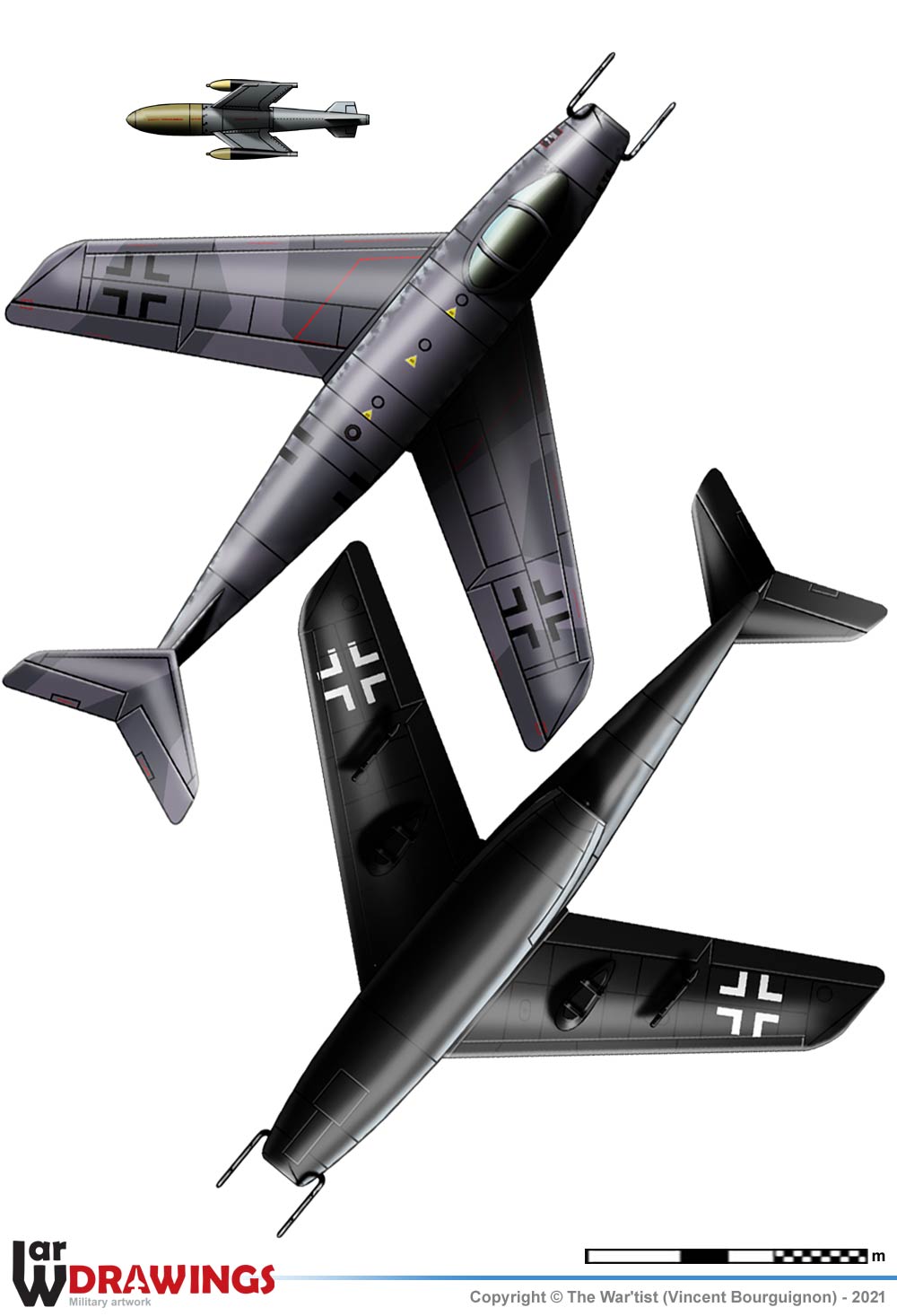 fighting variant with radar, 4 x X-4 air-to-air missiles and T-tail.