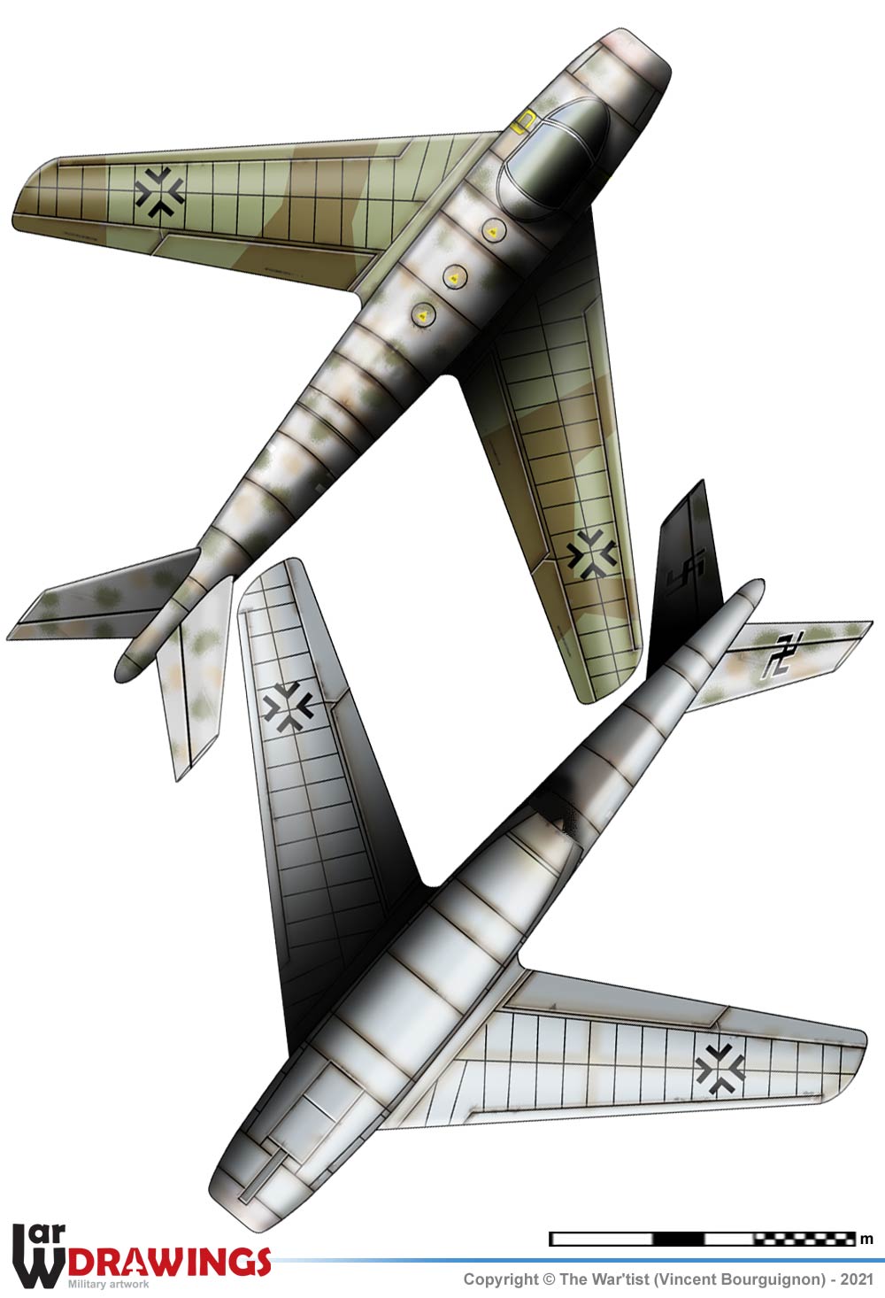 The final single-seat jet fighter design that went into production with a wingspan of 8.25 m, a length of 9.175 m and a weight of 1250 kg Artist's View! |